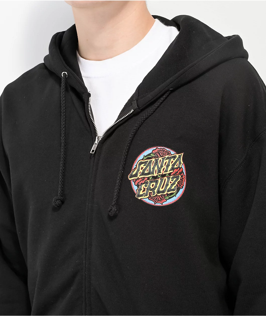 The Dressen Roses Dot zip hoodie from Santa Cruz comes in a black colorway with the brand’s Rose Dot logo on the left of chest and enlarged on the back. This hoodie is made of a soft cotton-poly blend with full zip closure and slash hand pockets to keep you warm.