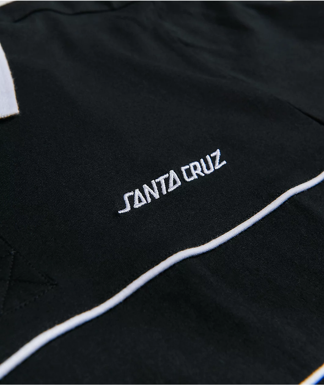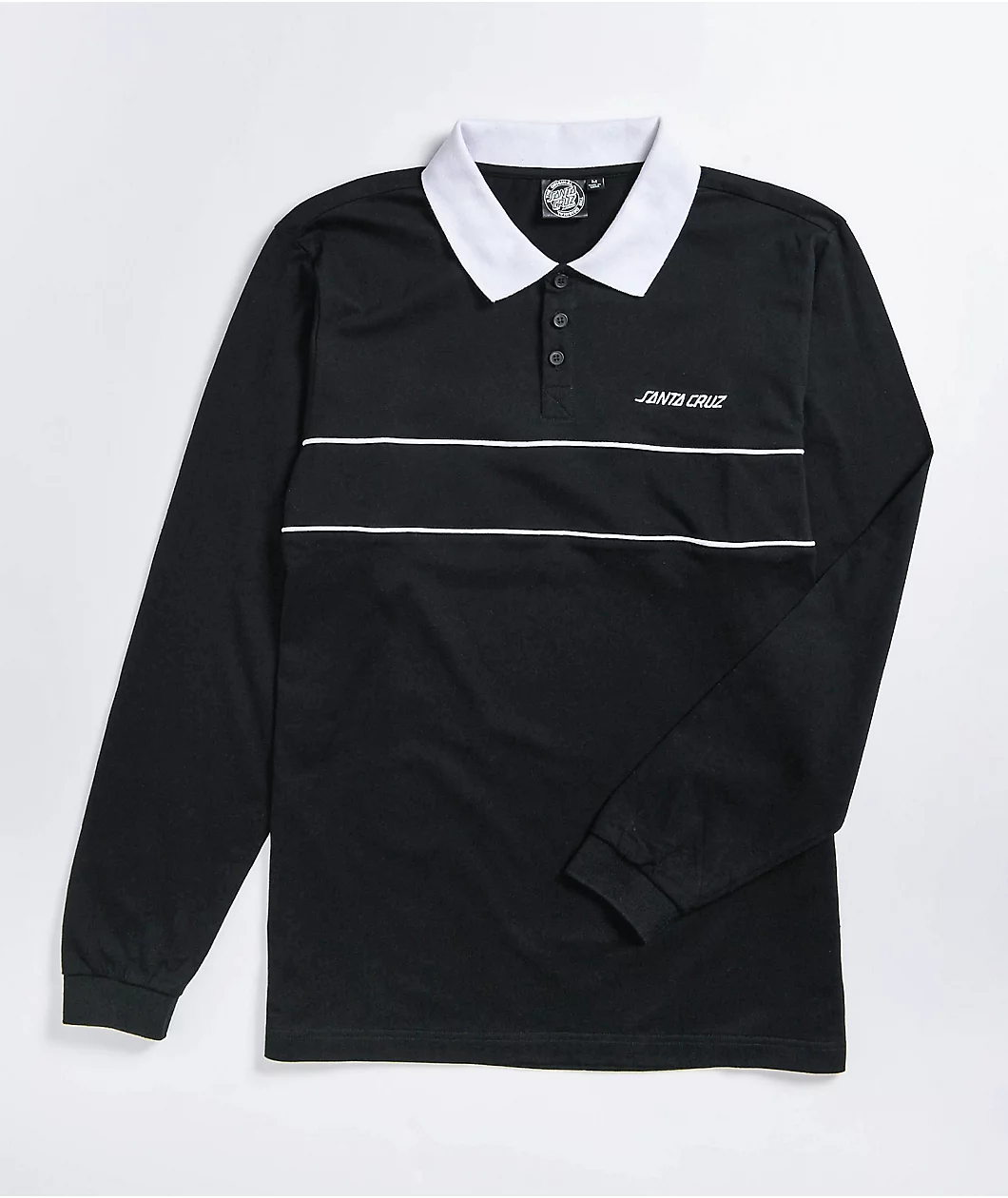 Add some old school vibes into your casual wardrobe with the Strip Block black long sleeve polo shirt! This Santa Cruz instant classic features an embroidered text logo at the left chest, along with dual white piping underneath to lend some sick contrast to the black colorway. A white collar finishes off the look of this awesome polo rugby shirt, ensuring a secure spot in any fashionable wardrobe.