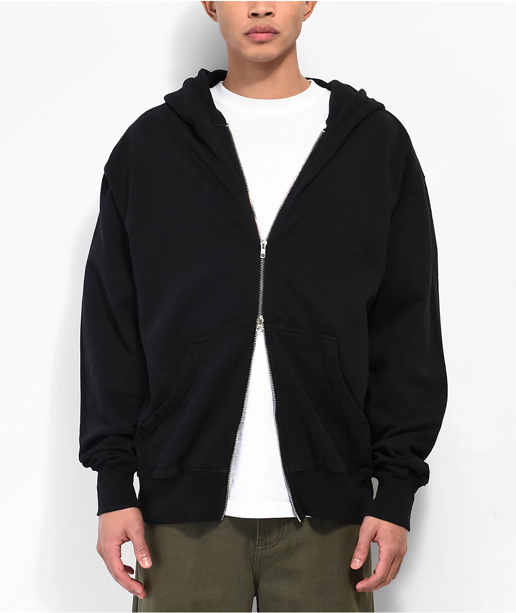 The Shaka Wear double zip hoodie is treated with a black garment dye wash; leaving the 12 oz heavyweight cotton fabric a vintage look, and a soft worn-in feel. The versatile layering piece has relaxed silhouette, and brings a streetwear influence to your looks. The essential close upgrade is finished with a stylish fixed hood, a cozy brushed interior, and dual hand pockets on the front for storage.