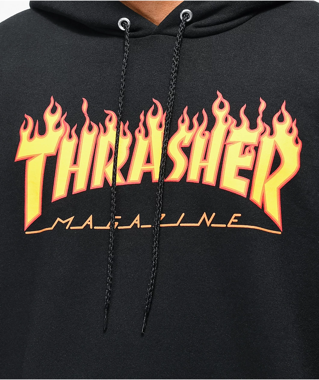 Spoil yourself with a classic old school Thrasher hoodie. The fleece lining provides excellent comfort and warmth while the black colorway features an iconic yellow and red Thrasher flame logo graphic screen printed on the chest.