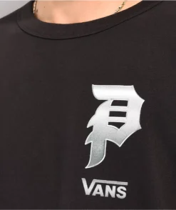 Skateboarding icons Vans and Primitive come together for the collaborative Chrome crewneck in a breathable black cotton blend construction. Screen-printed collaborative branding with a chrome motif is situated on the left chest, as the design is expanded with an added rose on the back. Made with a relaxed fit, and a cozy brushed interior, the Vans x Primitive crewneck is finished with ribbed accents along the cuffs and collar.