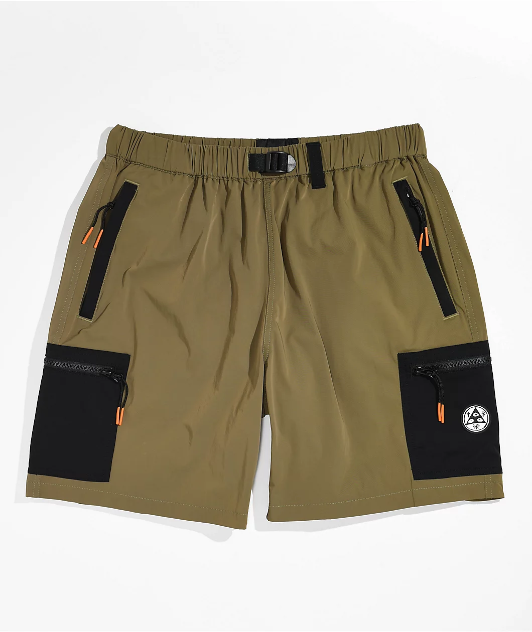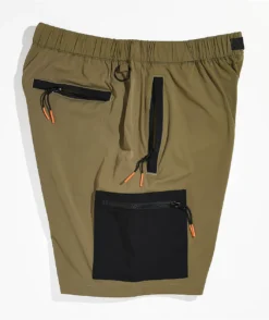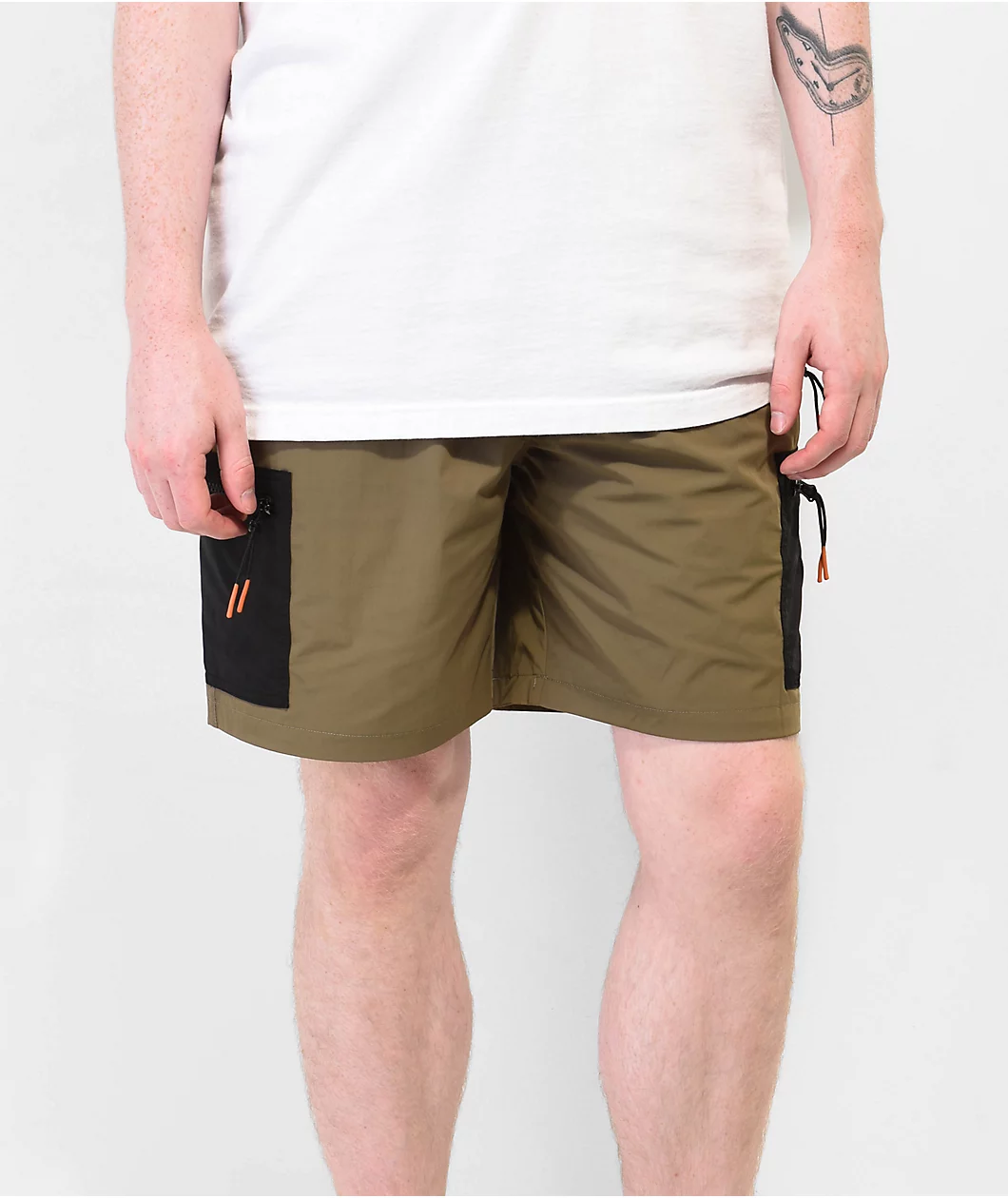 From Welcome comes the Apex climber shorts in a casual brown colorway with orange hues. Made from durable woven nylon, the shorts feature zipped hand and seat pockets, while black cargo pockets add a technical accent. With a built-in web belt and an elastic waistband for a custom fit, these Welcome climber shorts are finished with contrasting orange rubber aglets and a soft mesh lining for comfort.