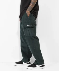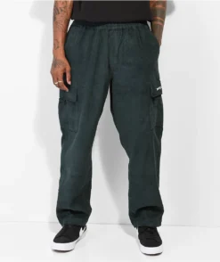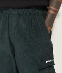The Chamber pants from Welcome feature a green corduroy construction with an elastic waist for a comfortable fit. The bold, yet tapered silhouette adds texture to any outfit, while the cargo pocket layout adds functionality to the look as well. With subtle Welcome branding along the left thigh and right hip, the Chamber corduroy pants are finished with a key ring accent along the belt line.