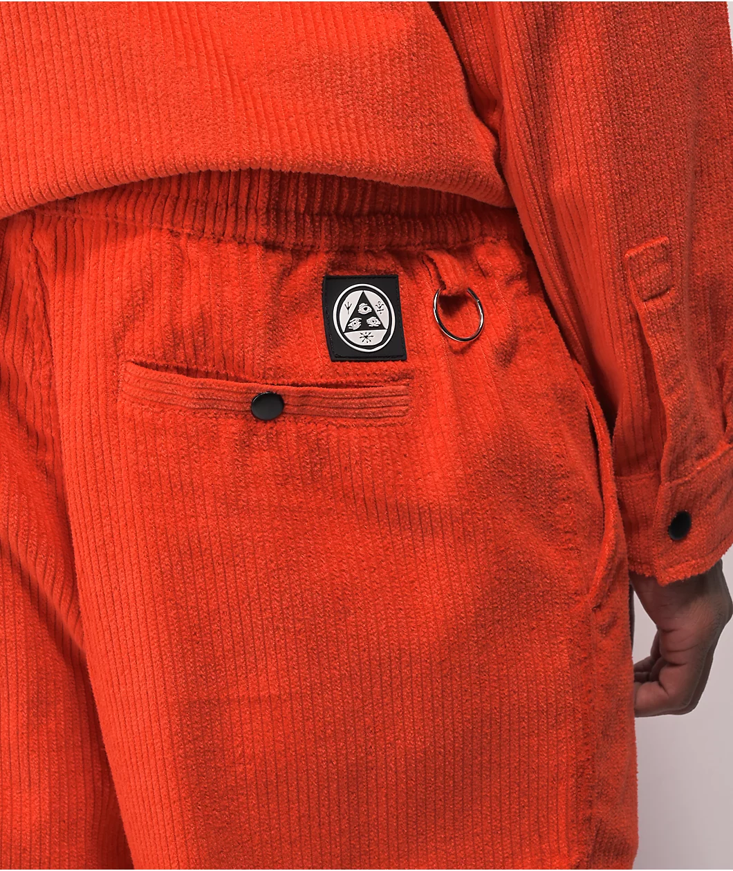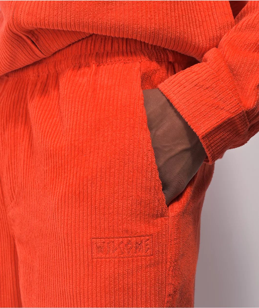 Add some vivid style into your outfits with Welcome’s Hydra Pumpkin neon red elastic waist corduroy pants. With a bright red exterior constructed from corduroy, these loose pants will add an eccentric, textured touch to any ensemble, while the drawstring-adjustable elastic waist and straight-legged silhouette keep them comfortable. Monochromatic Welcome logo detailing sits on the left hip, with a rubberized logo patch above the right seat pocket, adding in a dash of peculiar branded pizazz.