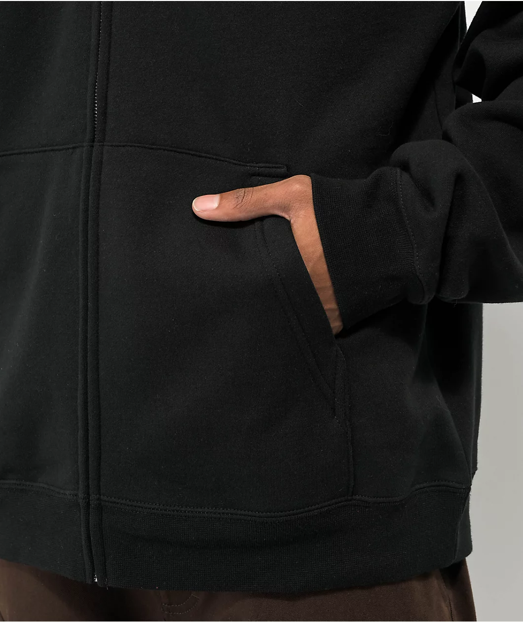 Zine brings this zip up hoodie in a black colorway, featuring a full zip closure and coming complete with an adjustable drawstring hood and dual slash hand pockets.